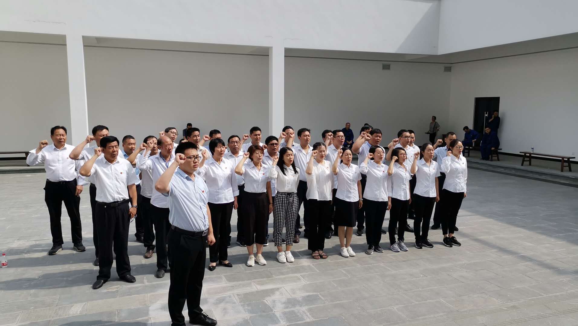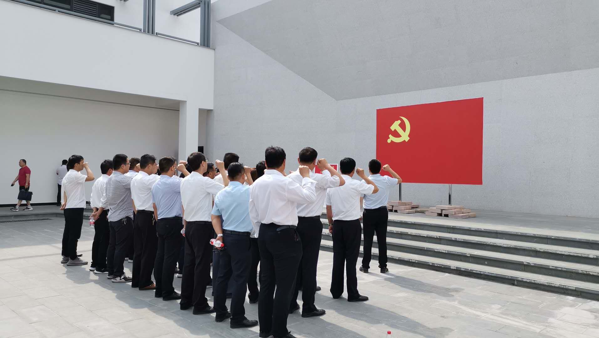 現(xiàn)場(chǎng)參觀學(xué)習(xí)結(jié)束后,全體黨員面對(duì)鮮紅的黨旗,集體宣誓,重溫入黨誓詞,堅(jiān)定理想信念,提升思想境界。