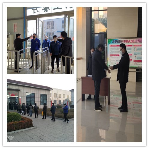 對(duì)復(fù)工員工每天發(fā)放口罩等防護(hù)用品,并進(jìn)行兩次體溫測量,確保復(fù)工員工的健康安全。